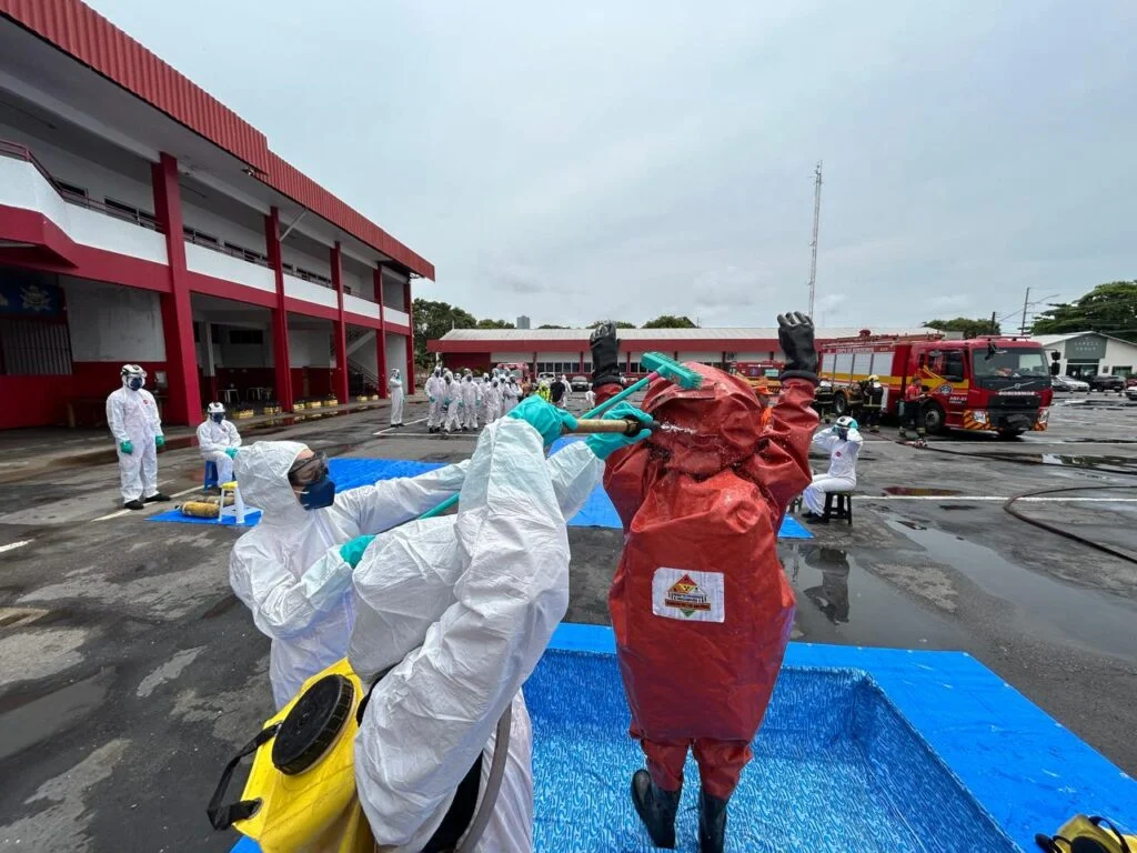Mais de 50 alunos do Curso de Formação de Oficiais (CFO) do Corpo de Bombeiros Militar do Amazonas (CBMAM) participaram, nesta quinta-feira (02), de um treinamento de emergência envolvendo produtos químicos em Manaus. O objetivo é preparar os profissionais para atuação em uma situação real.