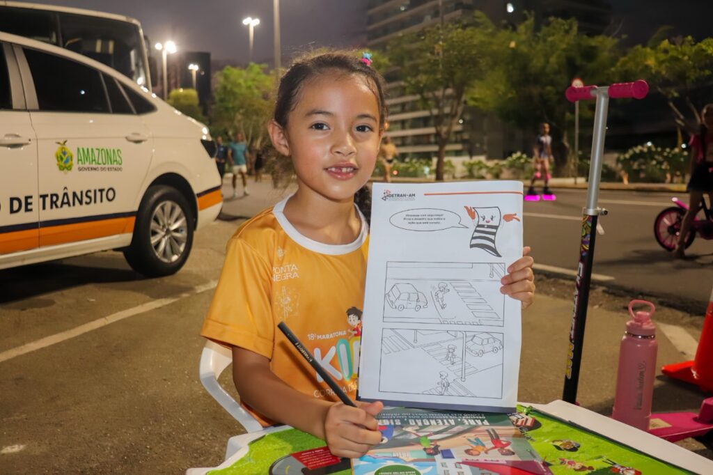 A pequena Julia Rafaela, 6, participou da interação de desenho, aprendendo a importância do uso de equipamentos de segurança. “O cinto de segurança é importante para proteger as pessoas, para a gente não passar por algum susto, para a gente não bater em algum carro e se machucar. E eu amei os desenhos”, afirma Julia.