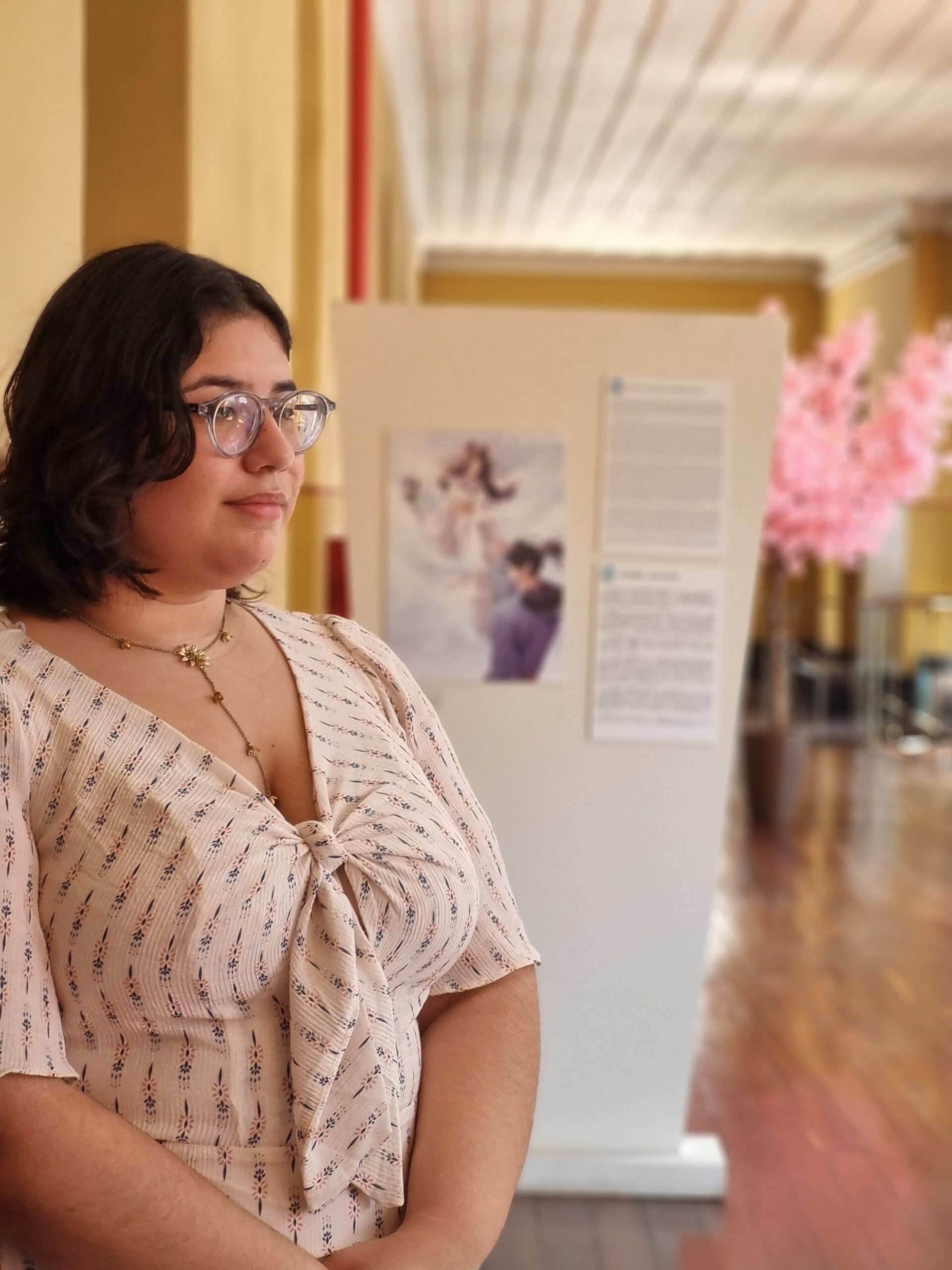 A artista também criou formas interativas para aproximar o público de suas criações. Após percorrer a exposição, os visitantes são convidados a escolher o conto que mais os tocou, colando adesivos de flores de sakura próximos à obra favorita. “Pensei nessa interação como uma forma de tornar o passeio mais inclusivo e divertido. É uma maneira de o público se conectar emocionalmente com as lendas e deixar sua marca na mostra”, explica Paola.
