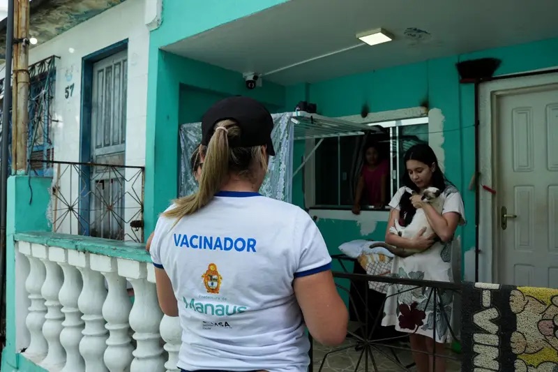 A etapa urbana da Campanha de Vacinação Antirrábica Animal de 2025 da Prefeitura de Manaus segue com a imunização de cães e gatos em visitas de casa em casa, em todos os bairros da capital, e em 46 postos fixos, nas zonas Norte, Leste, Oeste e Sul.