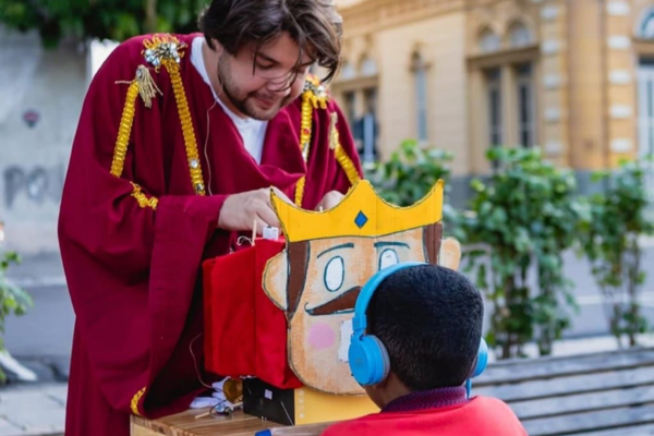 Com apresentações em caixas cenográficas em miniatura, o gênero convida o espectador a espiar, individualmente, narrativas cheias de fantasia, emoção e imaginação. Criado na Bahia nos anos 1980, o teatro lambe-lambe oferece uma experiência íntima: cada sessão dura apenas alguns minutos, mas carrega universos inteiros em pequenas janelas mágicas.